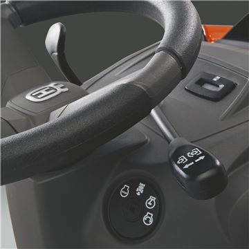Pedaaljuhtimisega hüdrostaatiline ülekanneSõidusuunda ja -kiirust reguleeritakse pedaalidega, tänu millele on mõlemad käed vabad rooli keeramiseks.