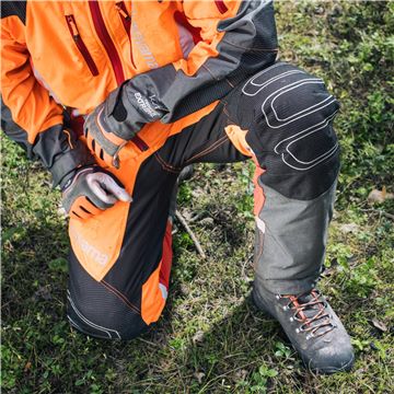 Husqvarna Tech-Knee vähendab survet põlvele ja hoiab põlved kuivana, kui toetute märjale maapinnale.