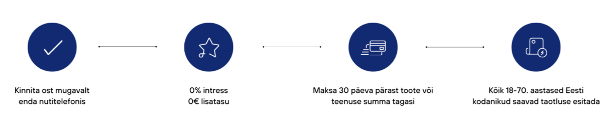 ESTO Maksa hiljem on uus viis ostude eest tasumiseks. Ostusumma jääb sulle kasutada, maksma pead alles 30 päeva jooksul. Saa täpselt, mida vajad ilma intressi, lisatasu ja sissemakseta.